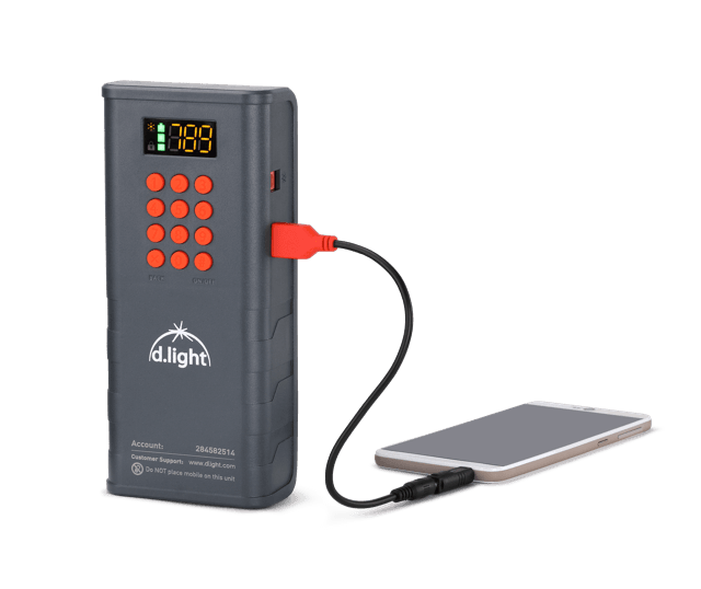 The d.light D100 is a versatile solar home system that features two LED bulbs, one tube light with wall-mounted switches, and a USB port for reliable mobile phone charging. Each light is bright enough to keep your home well-lit for hours.