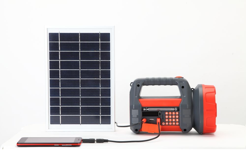 he d.light T500R is a versatile, solar-powered multifunctional torch designed for security, connectivity, and entertainment. With its ultra-bright 1-kilometer beam and ambient sidelight, it delivers reliable lighting indoors and outdoors. The built-in USB port keeps your phone charged, while the FM radio, Bluetooth connectivity, and music playback from memory cards or USB drives ensure nonstop entertainment. Equipped with a solar panel and PayGo flexibility, the T500R is a smart, affordable solution for households, small businesses, and outdoor users who need dependable power and light.